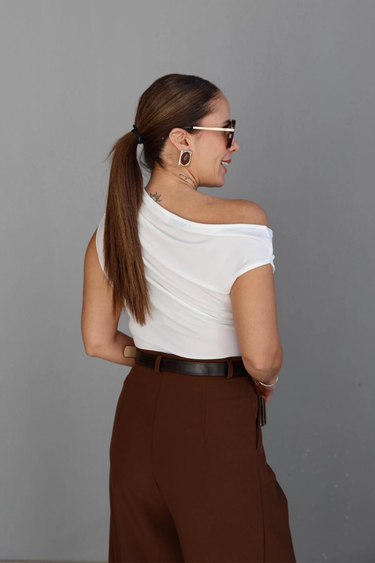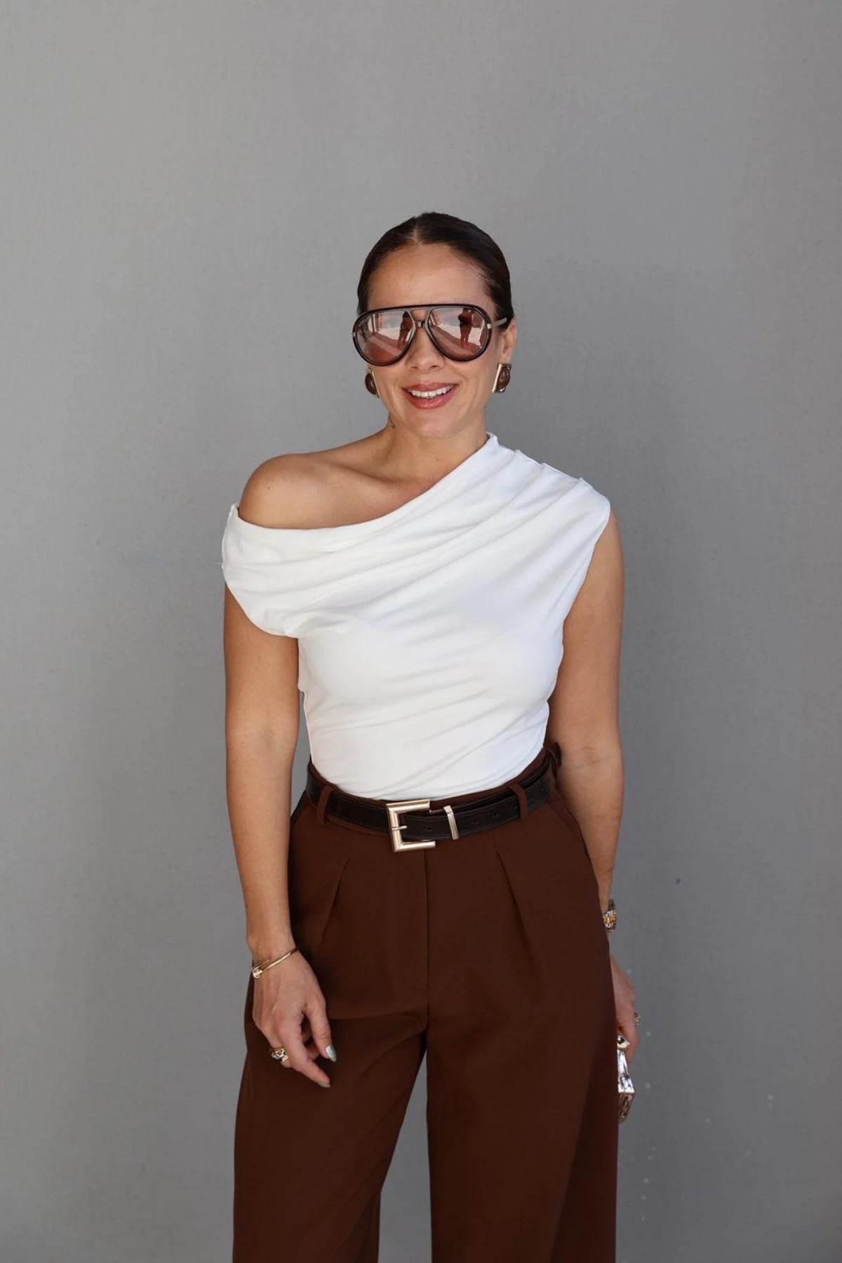 Beyaz Kayık Yaka Drapeli Bluz Hakkında