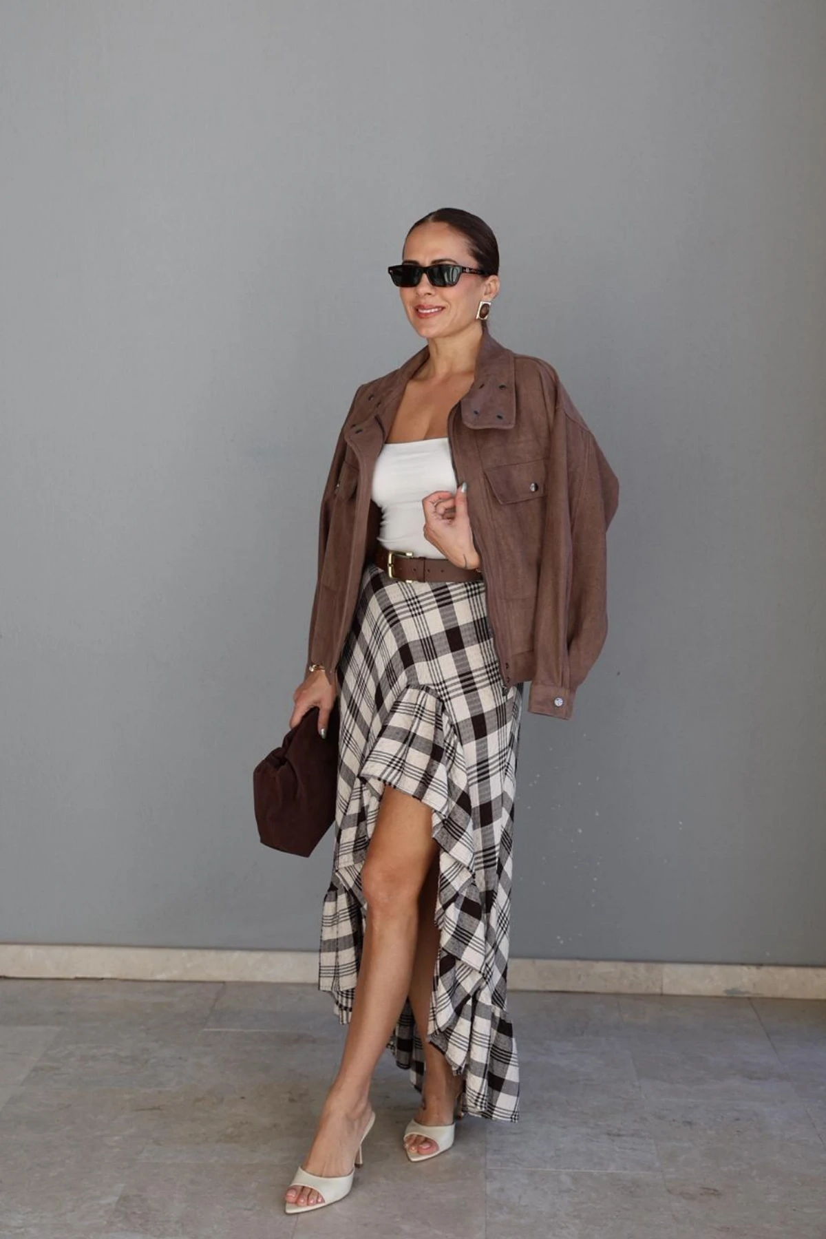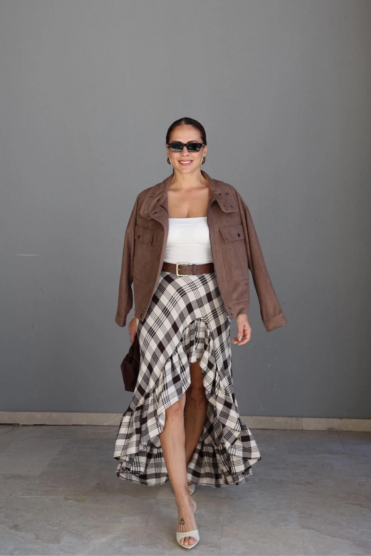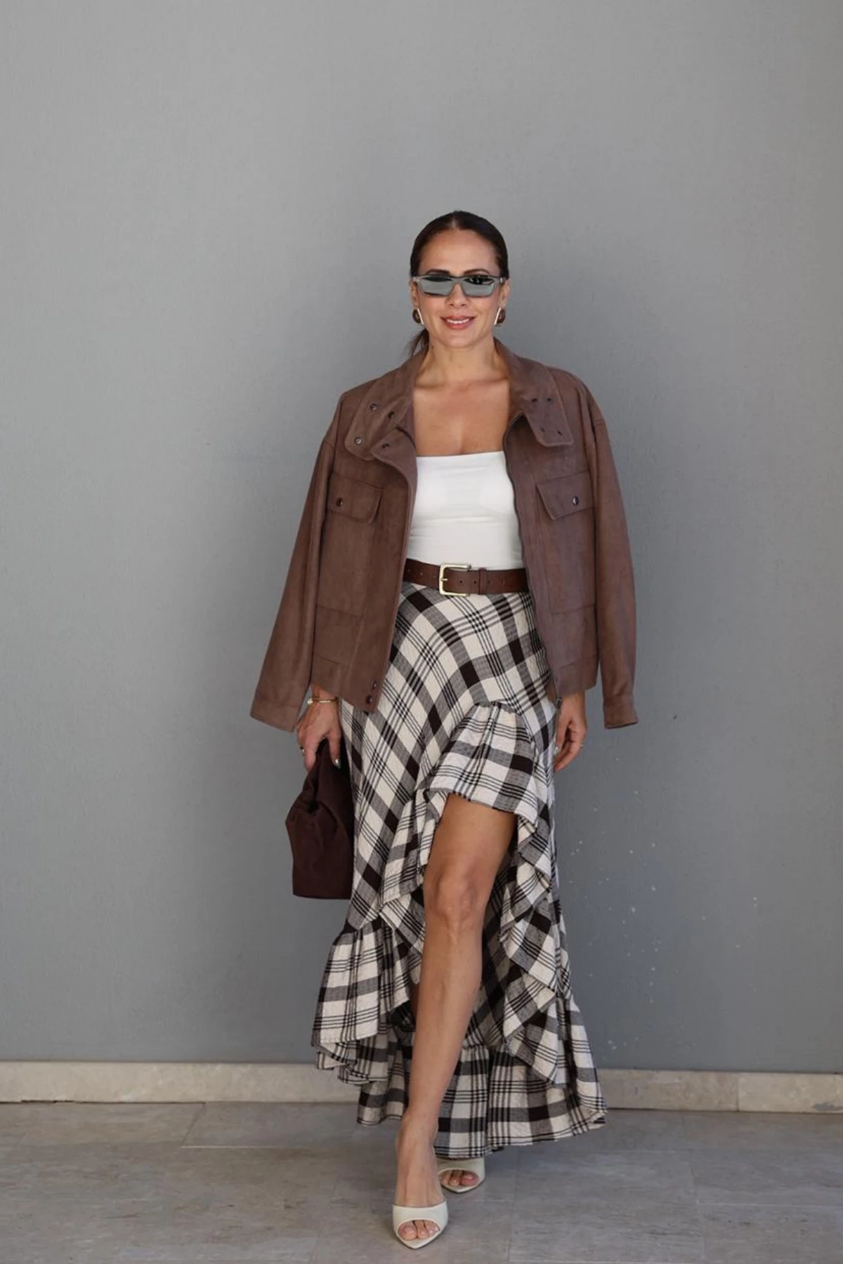 Ekru Fırfırlı Ekoseli Etek Hakkında