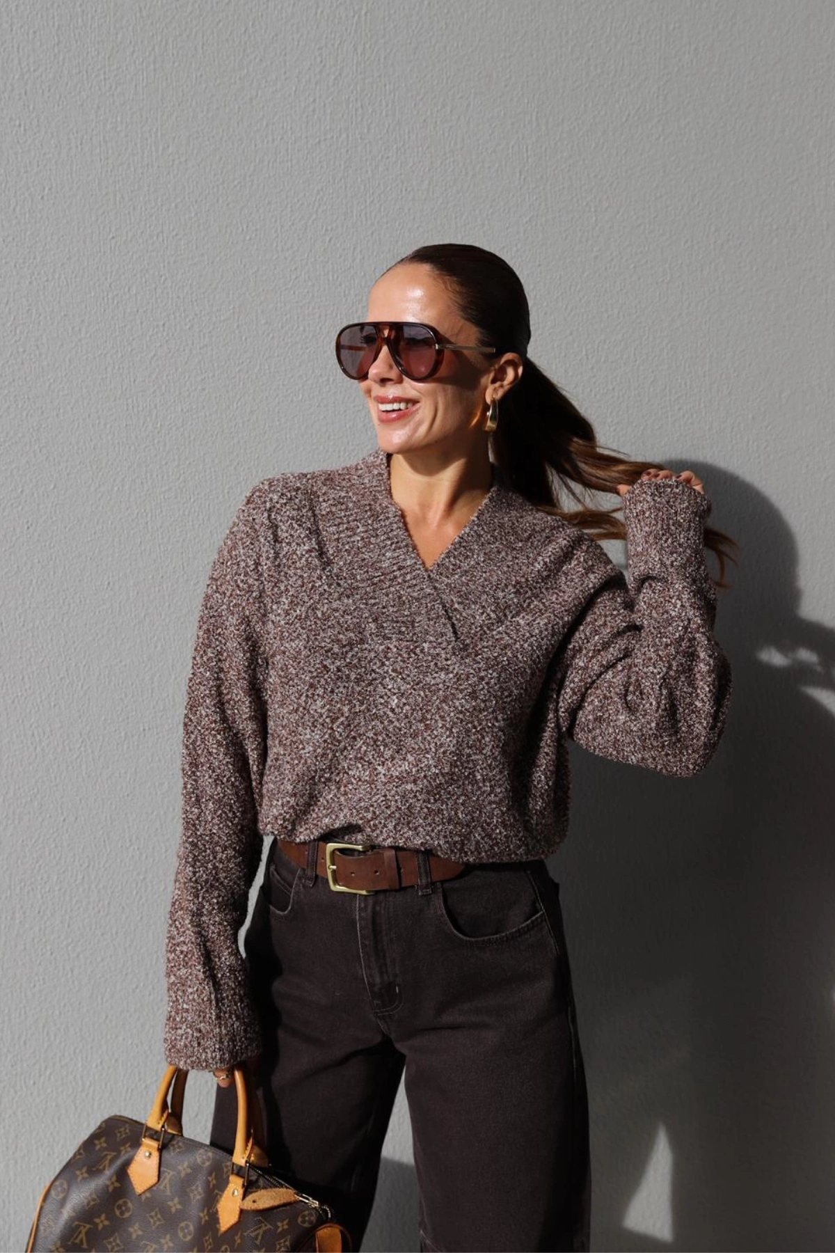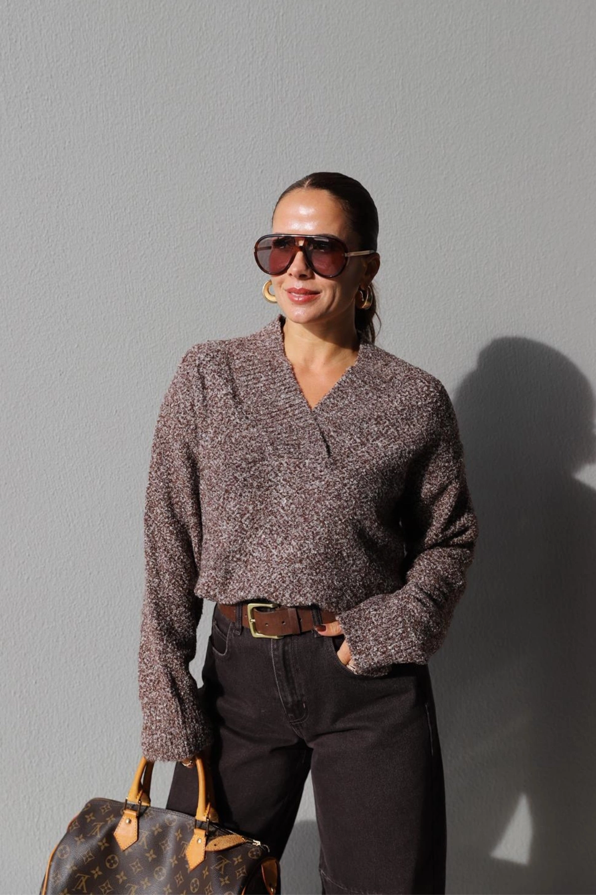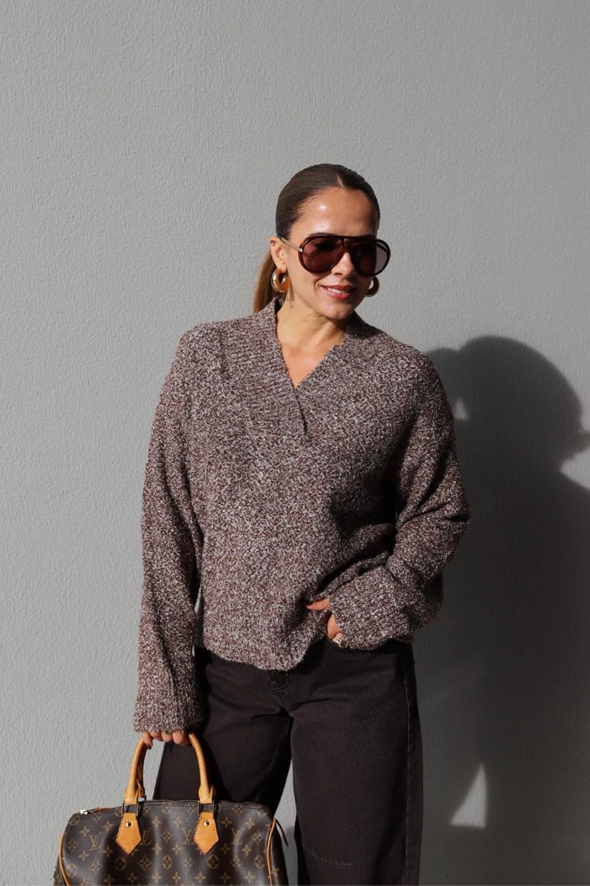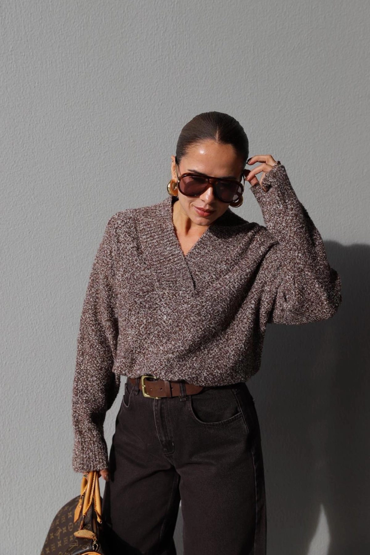 Brown Flecked V Neck Sweater About