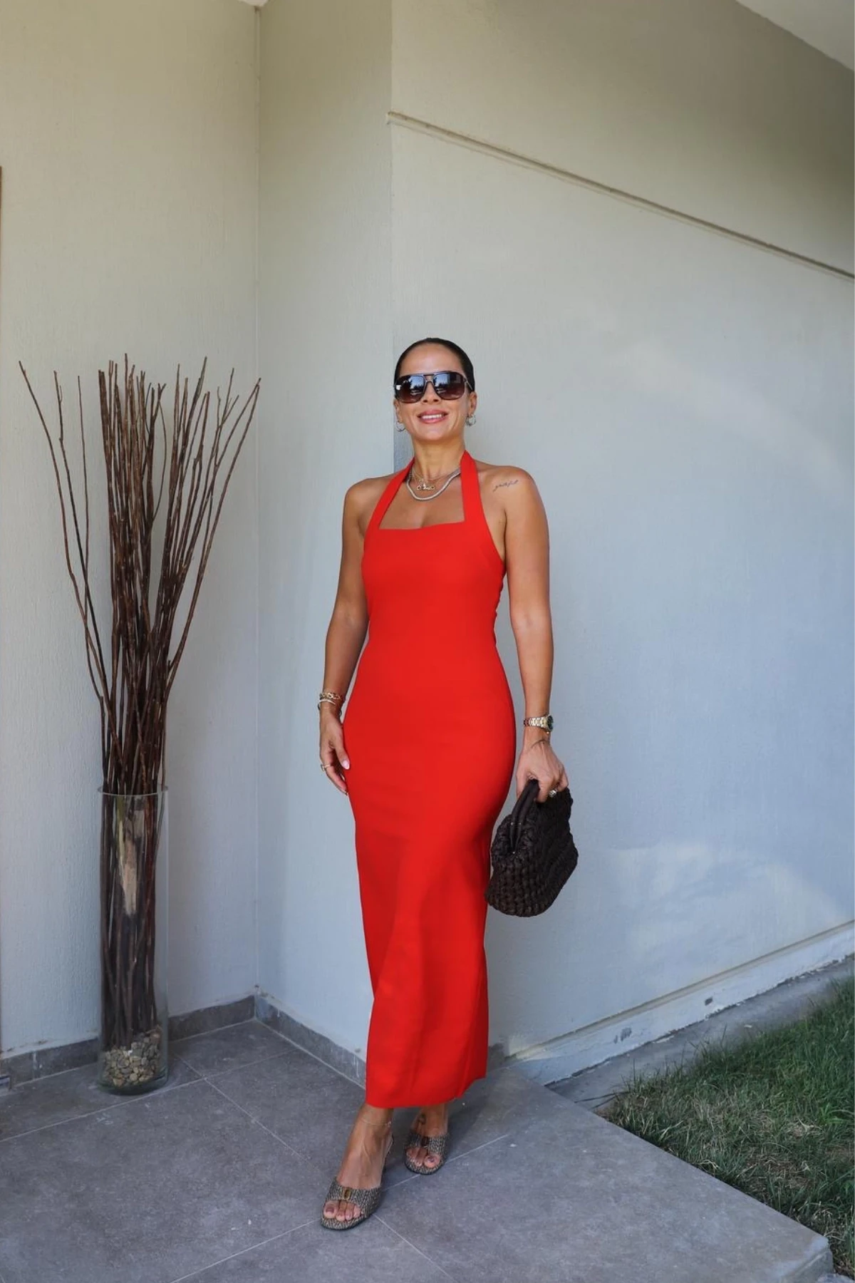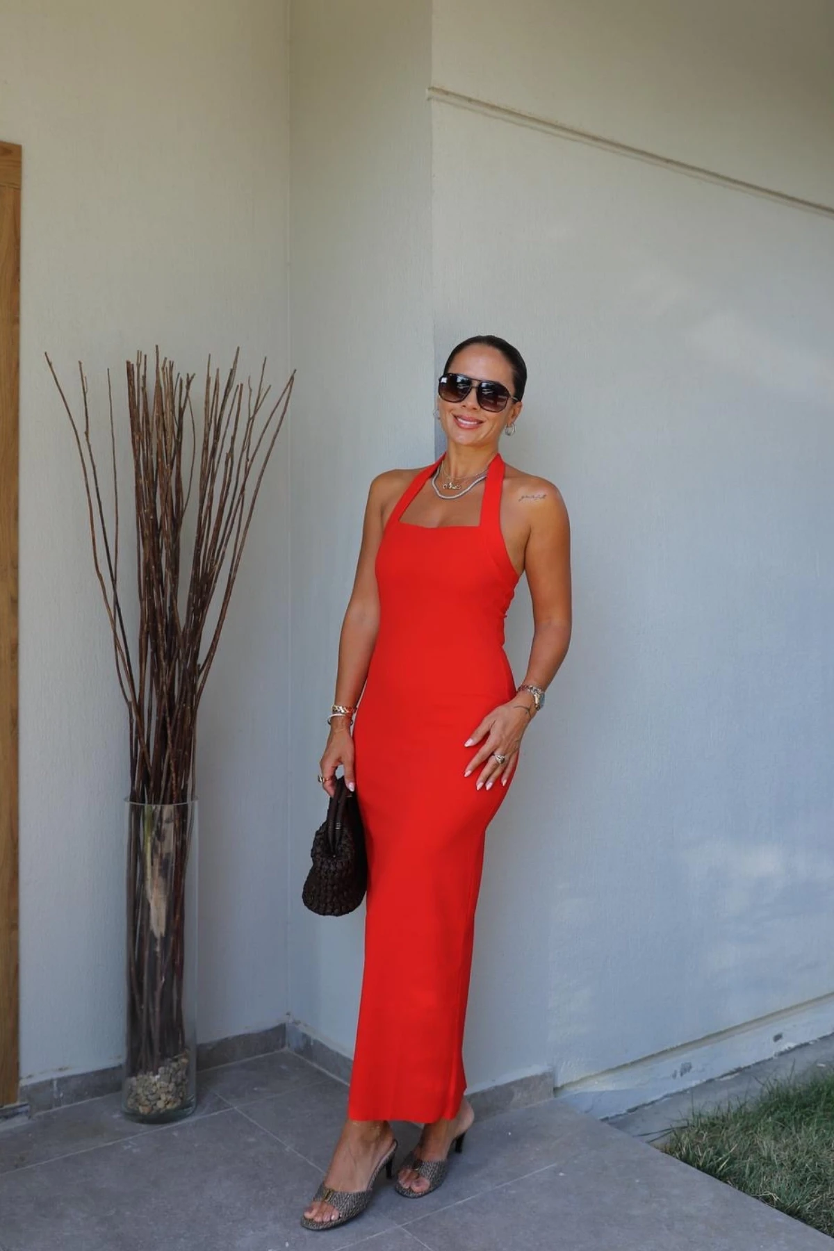 RED Dress with Cut-Out Back Slit Detail