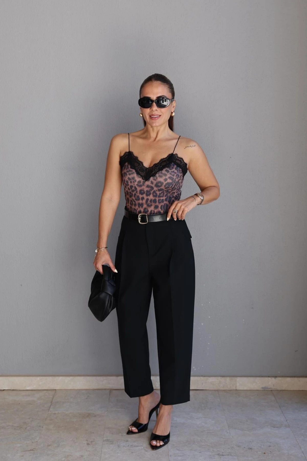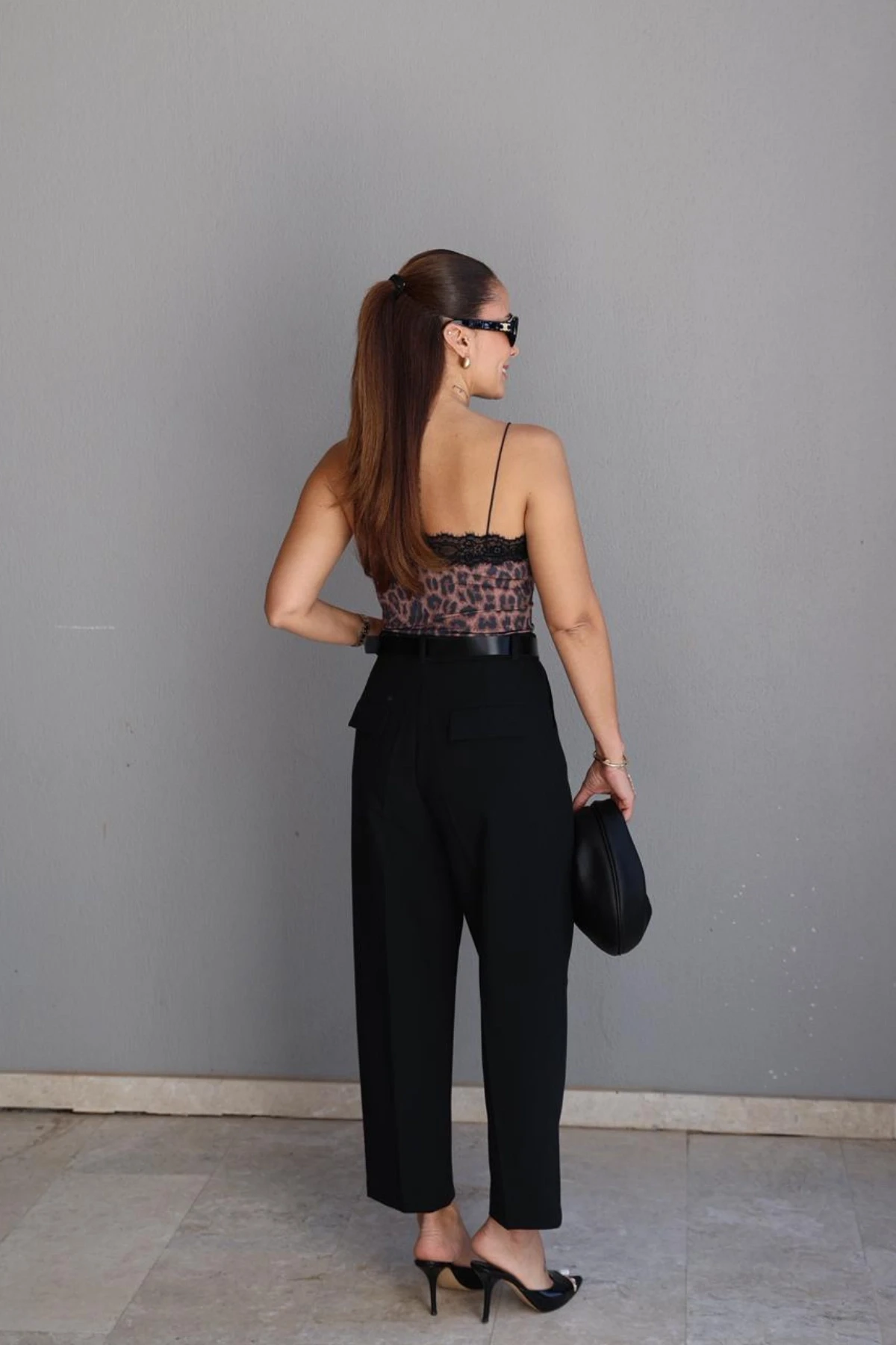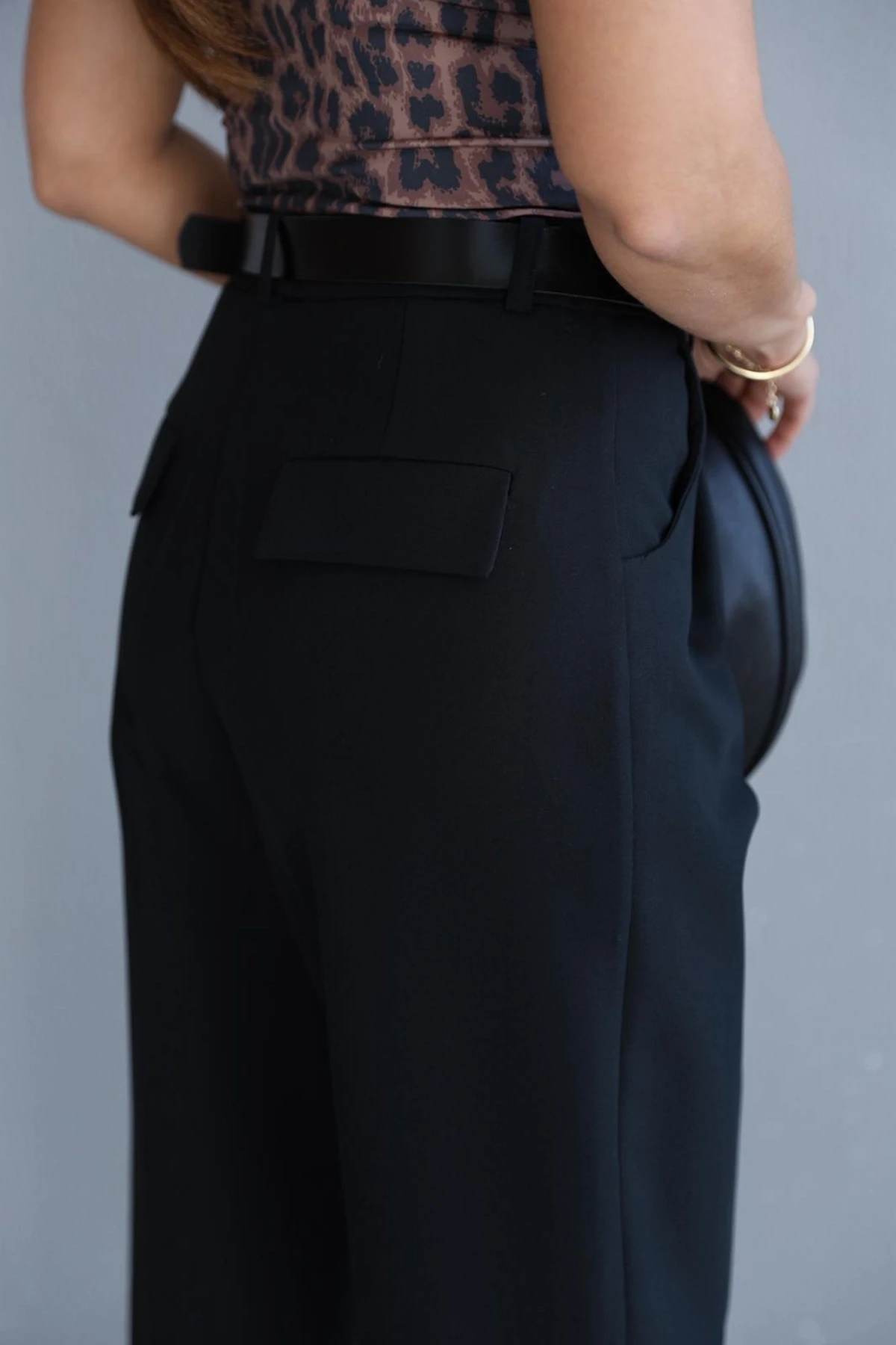 Siyah Pens Detay Kemerli Pantolon About