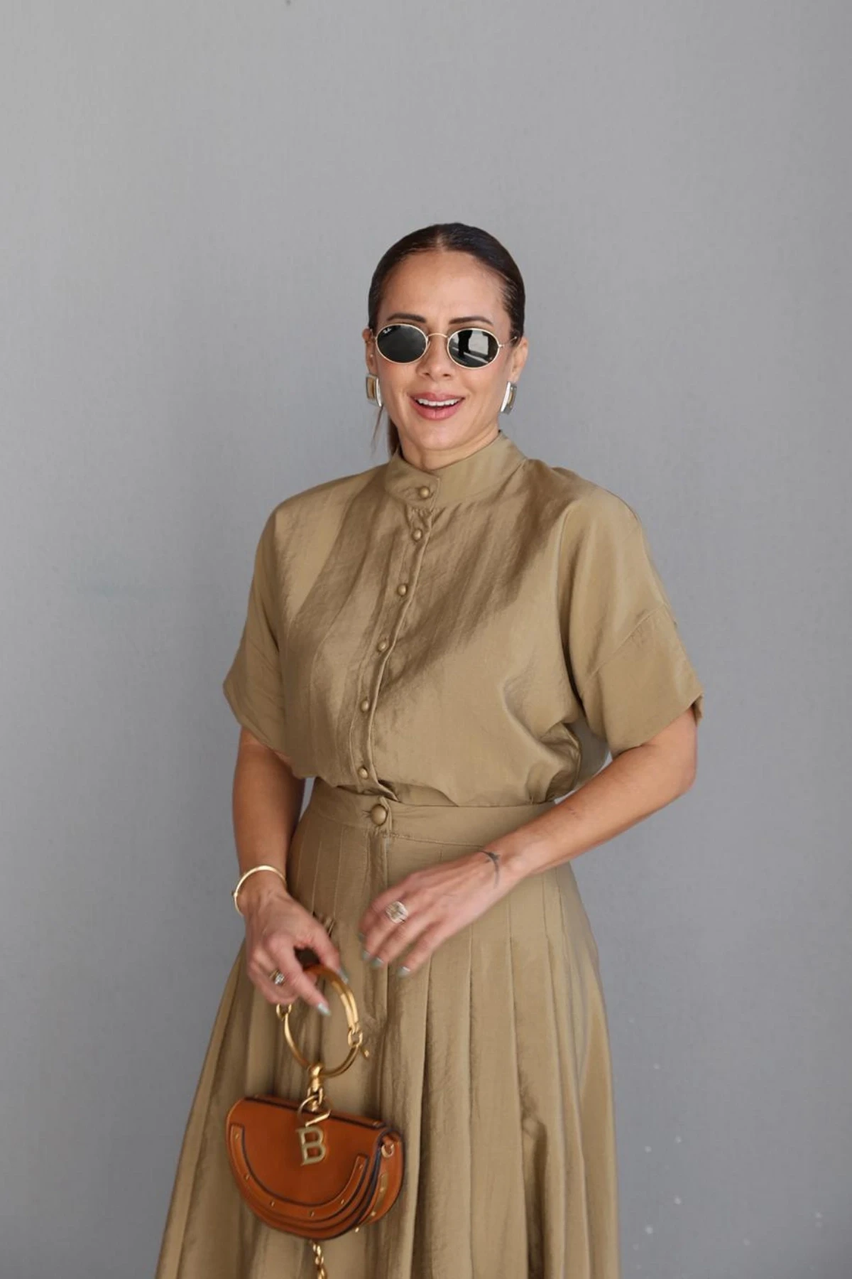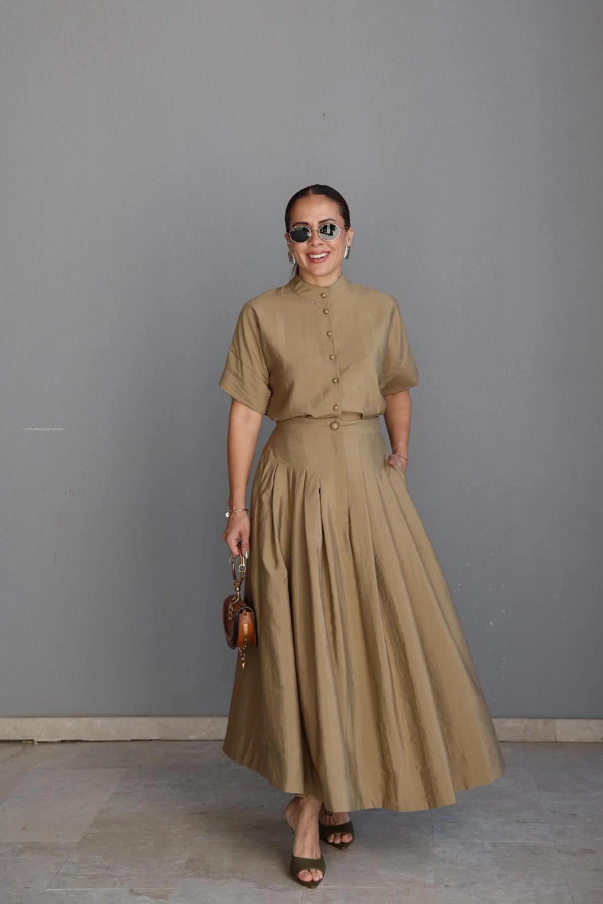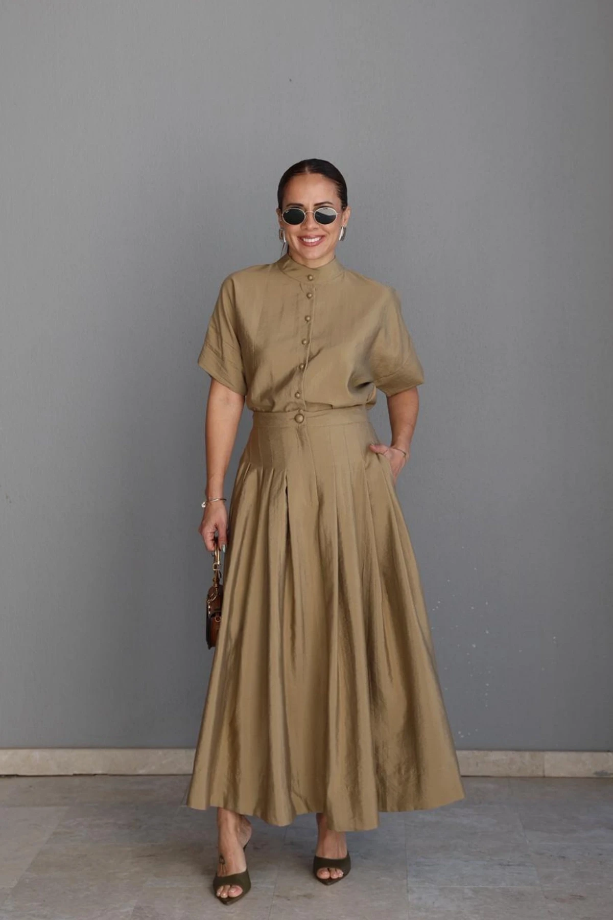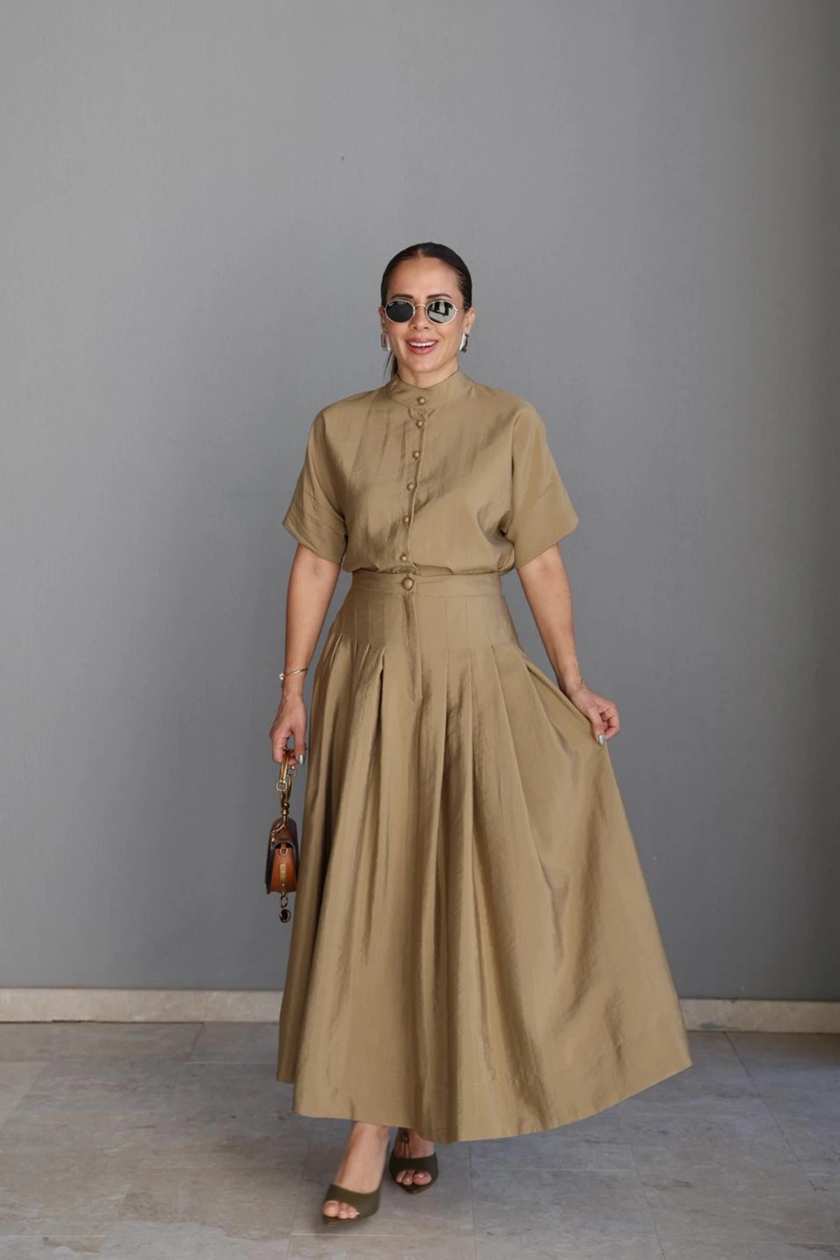 HAKİ Kloş Etek Gömlek Takım Hakkında