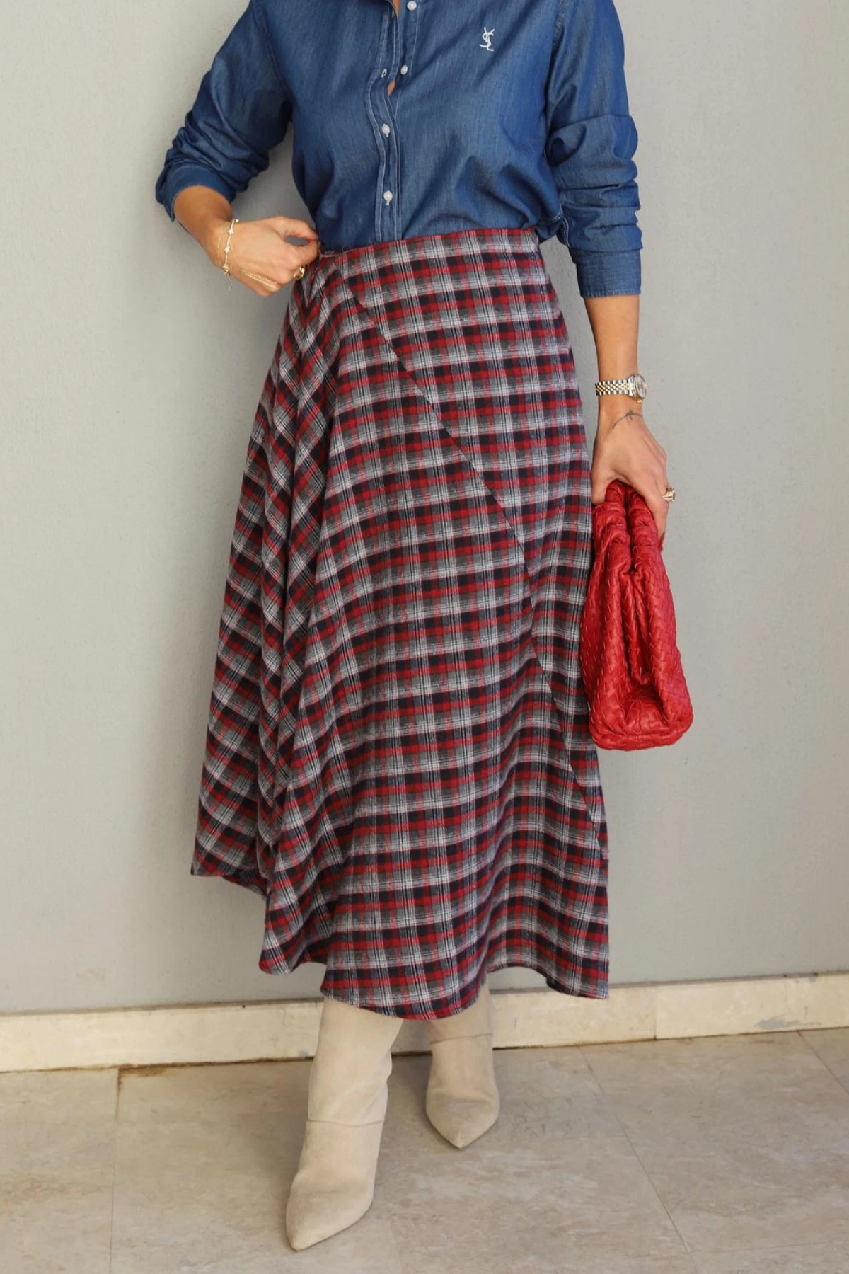 KIRMIZI Ekoseli Etek Hakkında