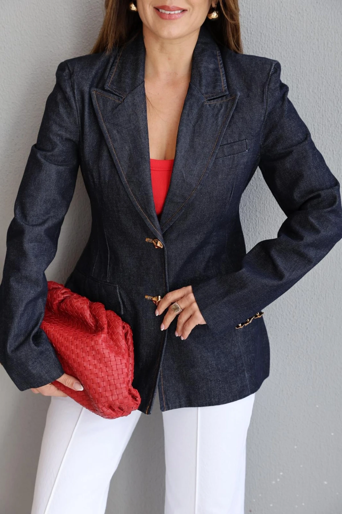 Lacivert Gold Düğme Detay Blazer Hakkında