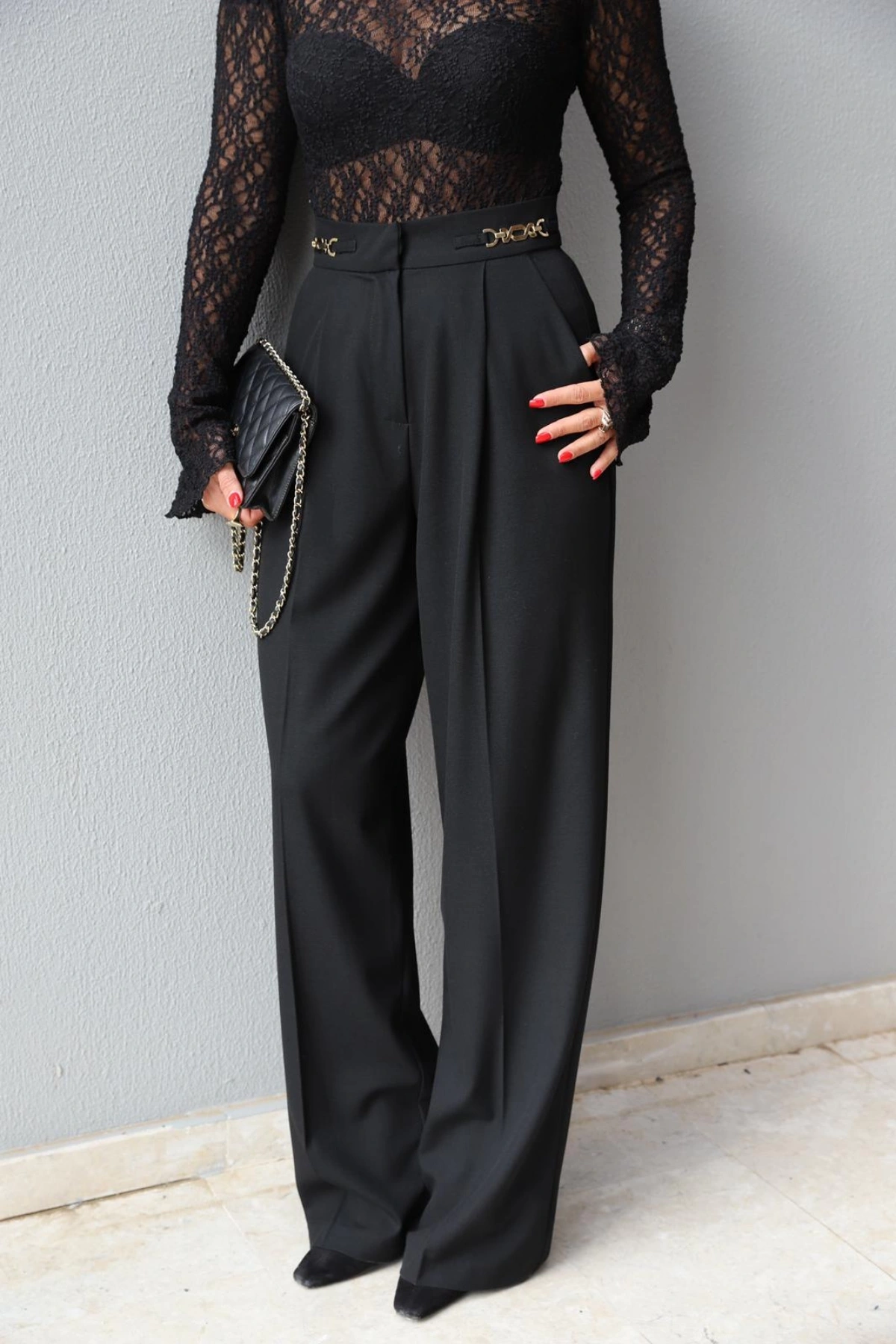 Siyah Bel Detay Palazzo Pantolon Hakkında