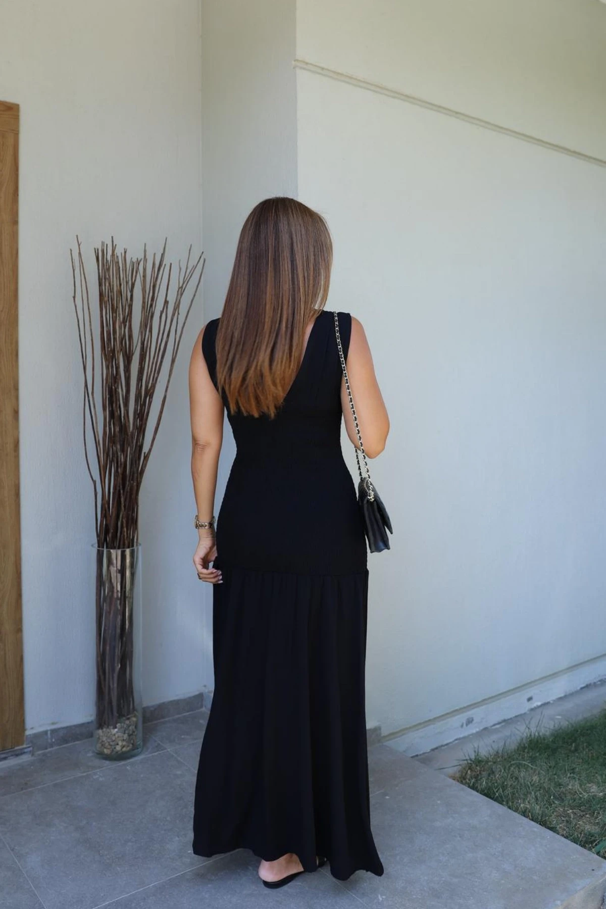 Siyah Gipe Detay Elbise