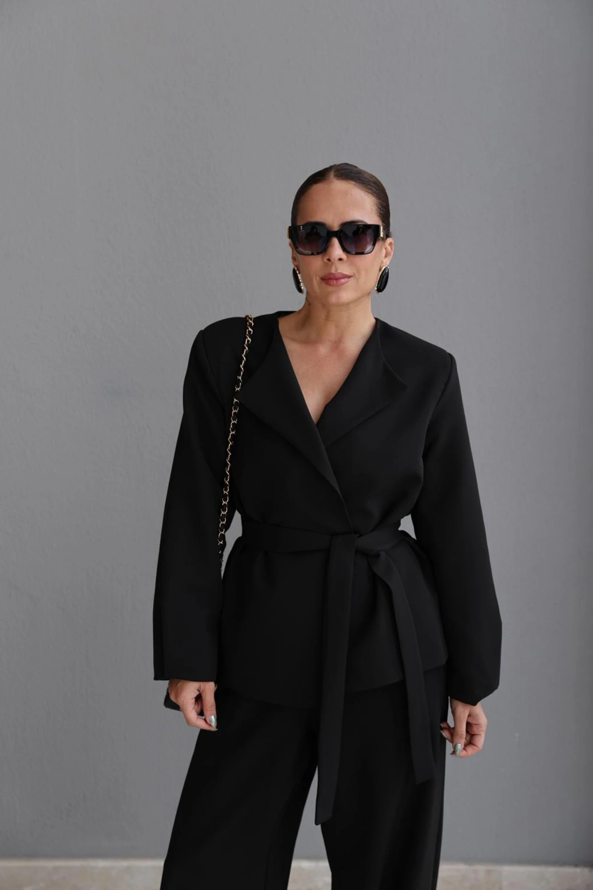 Siyah Kuşaklı Ceket Pantolon Takım Hakkında