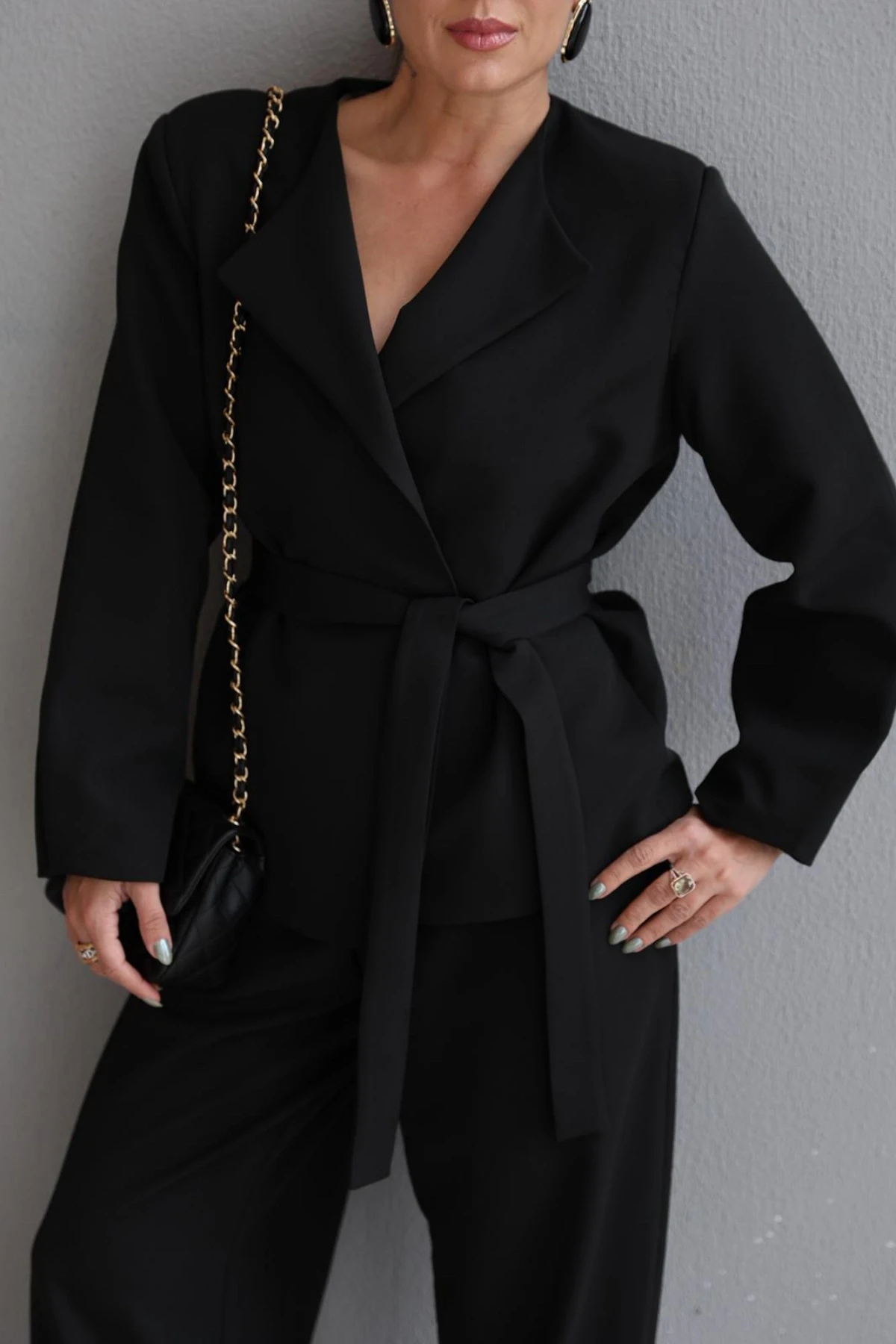 Siyah Kuşaklı Ceket Pantolon Takım